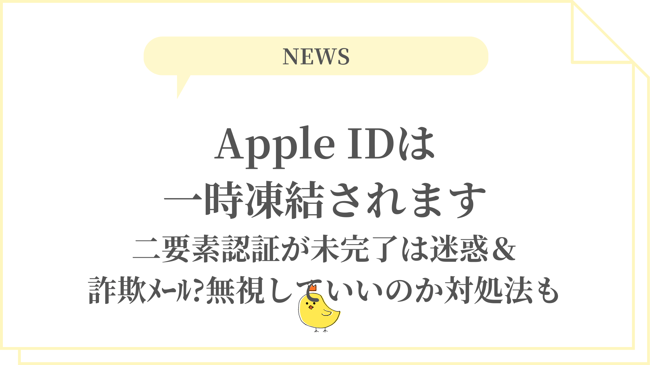 「Apple IDは一時凍結されます、二要素認証が未完了」は詐欺メール100%確定、Apple公式はメール警告せずデバイス画面ポップアップのみ。