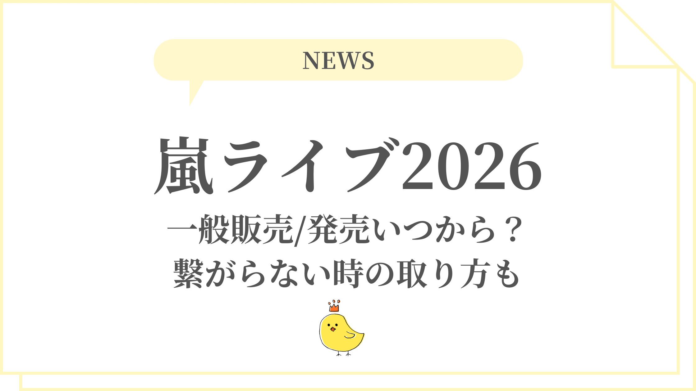 嵐のラストツアー「ARASHI LIVE TOUR 2026 We are ARASHI」のFC先行が本日1/13当落発表で、「落選した!一般販売いつ?」「イープラス繋がらない時の取り方知りたい!」と一般販売待ちのファンが続出中。