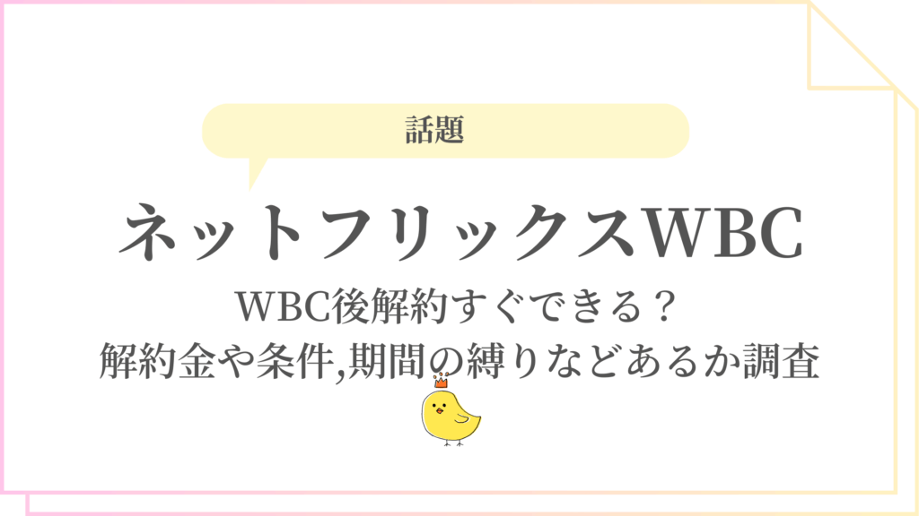 ネットフリックスWBC後解約すぐできる?解約金や条件,期間の縛りなどあるか調査