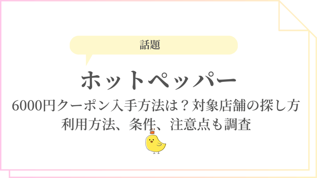 ホットペッパー6000円クーポン入手方法は?対象店舗の探し方や利用方法、条件、注意点も調査