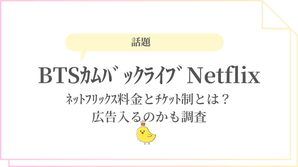 BTSカムバックライブのネットフリックス料金とチケット制とは?広告入るのかも調査