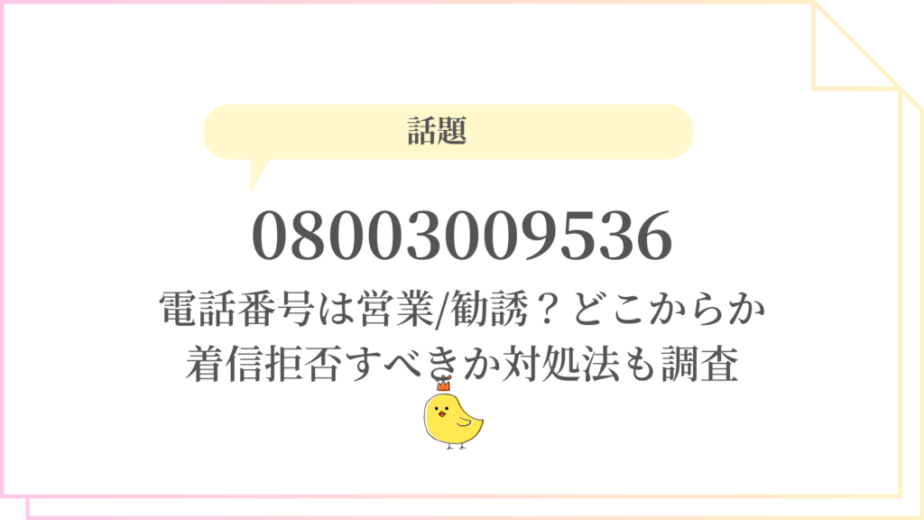 08003009536電話番号は営業/勧誘?どこからか着信拒否すべきか対処法も調査