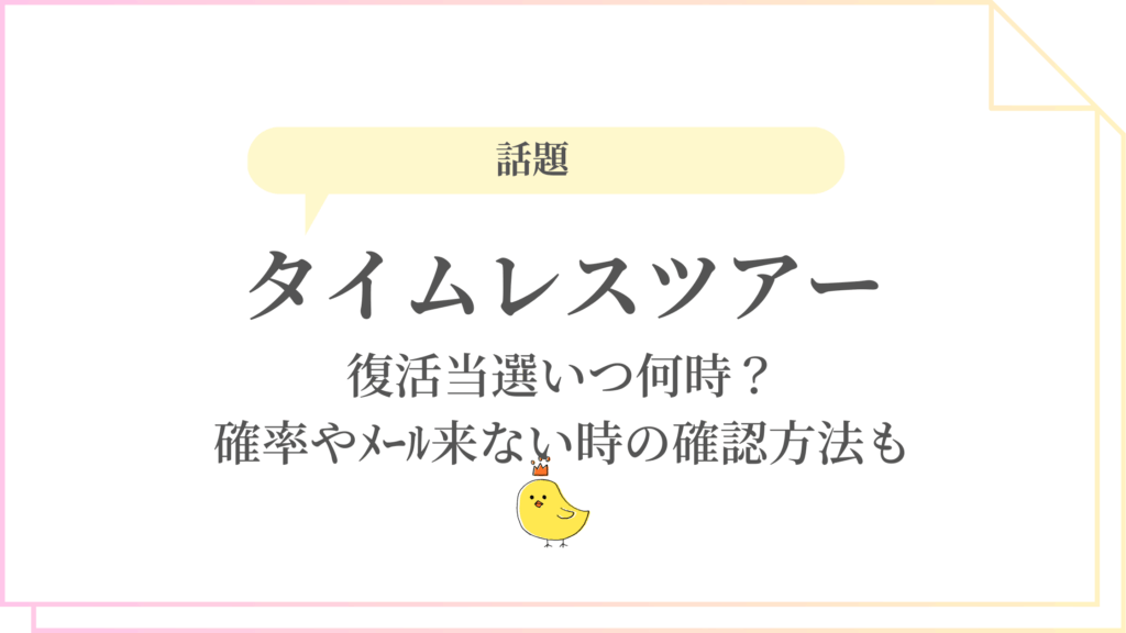 タイムレスツアー2026復活当選いつ何時?確率やメール来ない時の確認方法も
