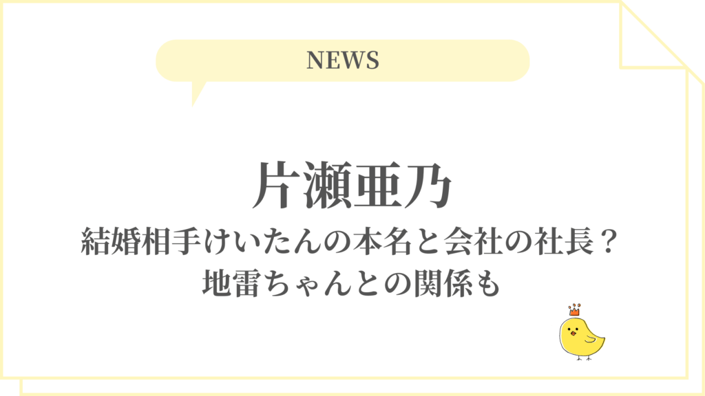 • 片瀬亜乃の結婚相手けいたんの本名と会社の社長?地雷ちゃんとの関係も