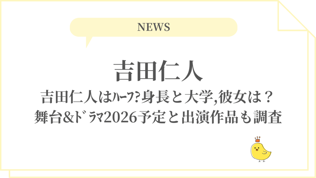 吉田仁人はハーフ?身長と大学,彼女は?舞台&ドラマ2026予定と出演作品も調査