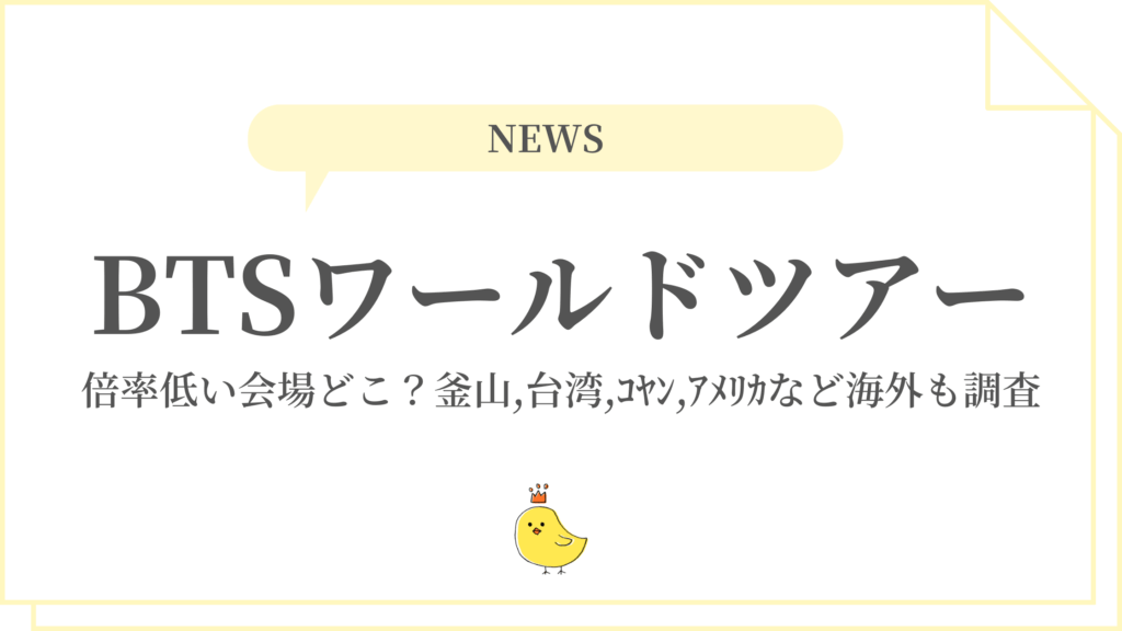 • BTSワールドツアー2026倍率低い会場どこ?釜山,台湾,コヤン,アメリカなど海外も調査