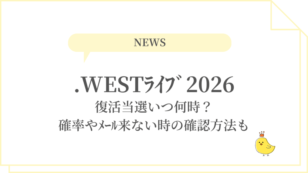 • .WESTライブ2026復活当選いつ何時?確率やメール来ない時の確認方法も
