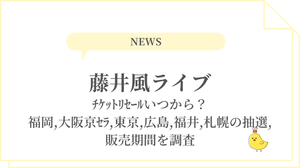 藤井風ライブ2026チケットリセールいつから?福岡,大阪京セラ,東京,広島,福井,札幌の抽選,販売期間を調査