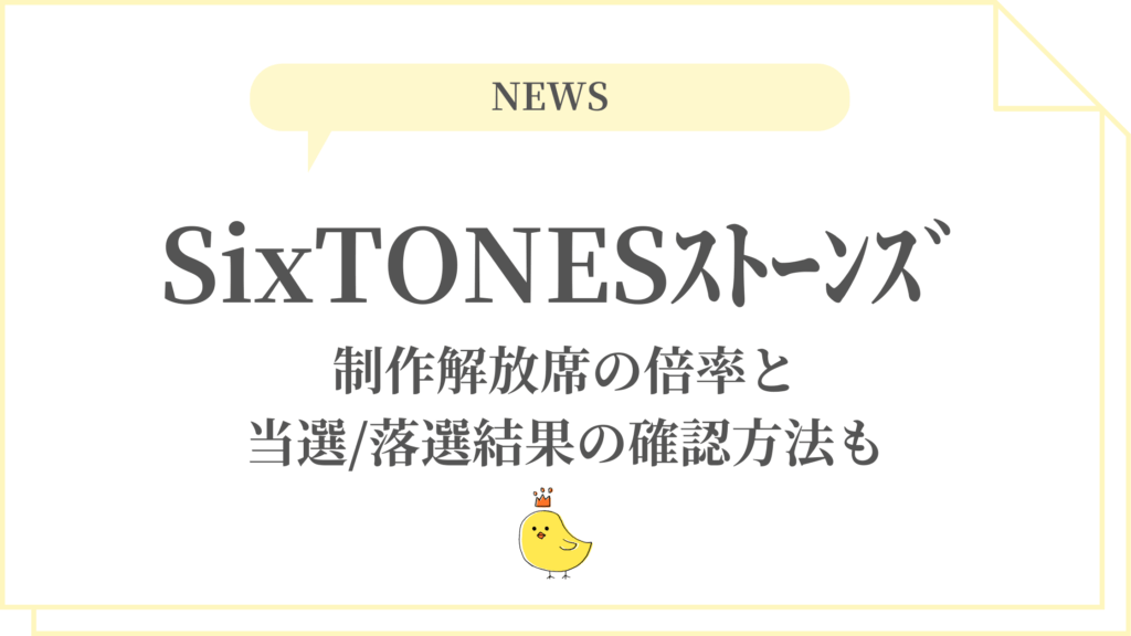 SixTONESストーンズライブ2026制作解放席の倍率と当選/落選結果の確認方法も