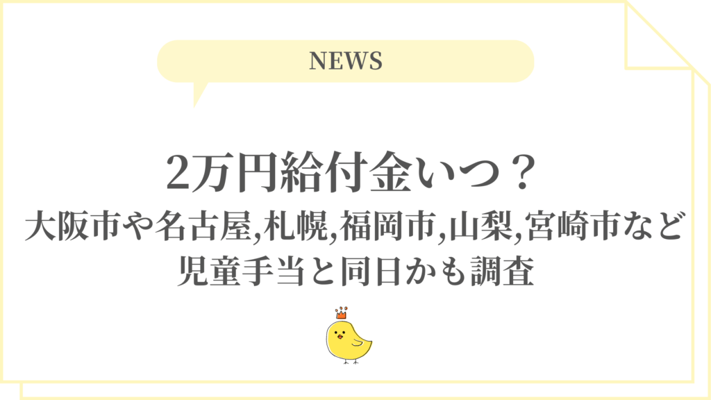 2万円給付金2026いつ?大阪市や名古屋,札幌,福岡市,山梨,宮崎市など児童手当と同日かも調査