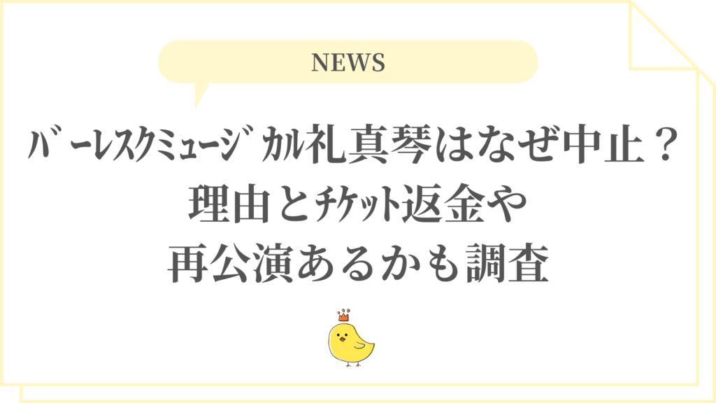 バーレスクミュージカル礼真琴はなぜ中止?理由とチケット返金や再公演あるかも調査