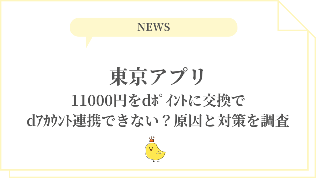 東京アプリ11000円をdポイントに交換でdアカウント連携できない?原因と対策を調査