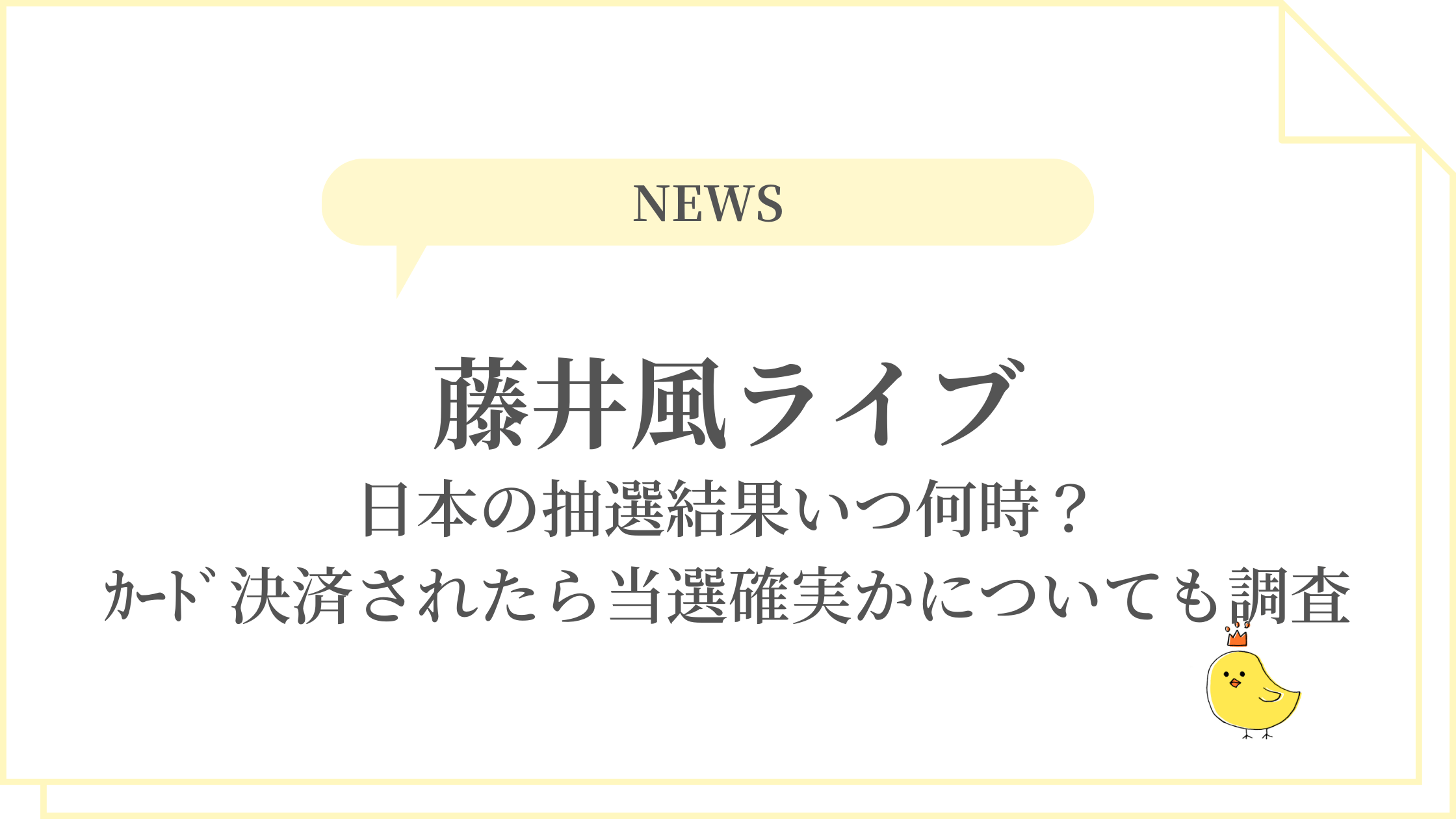 抽選結果の確認方法や時間、カード決済の謎、そして当落後の流れを徹底調査しました。公表されていない情報は過去の藤井風ライブ傾向から予想。1月16日現在、Xで「当落祈り垢」が急増中で、カード決済済みの人が「これって当選確定?」とざわついています。家族で楽しむ夏の予定を決める大事な瞬間、完全ガイドをお届けします。