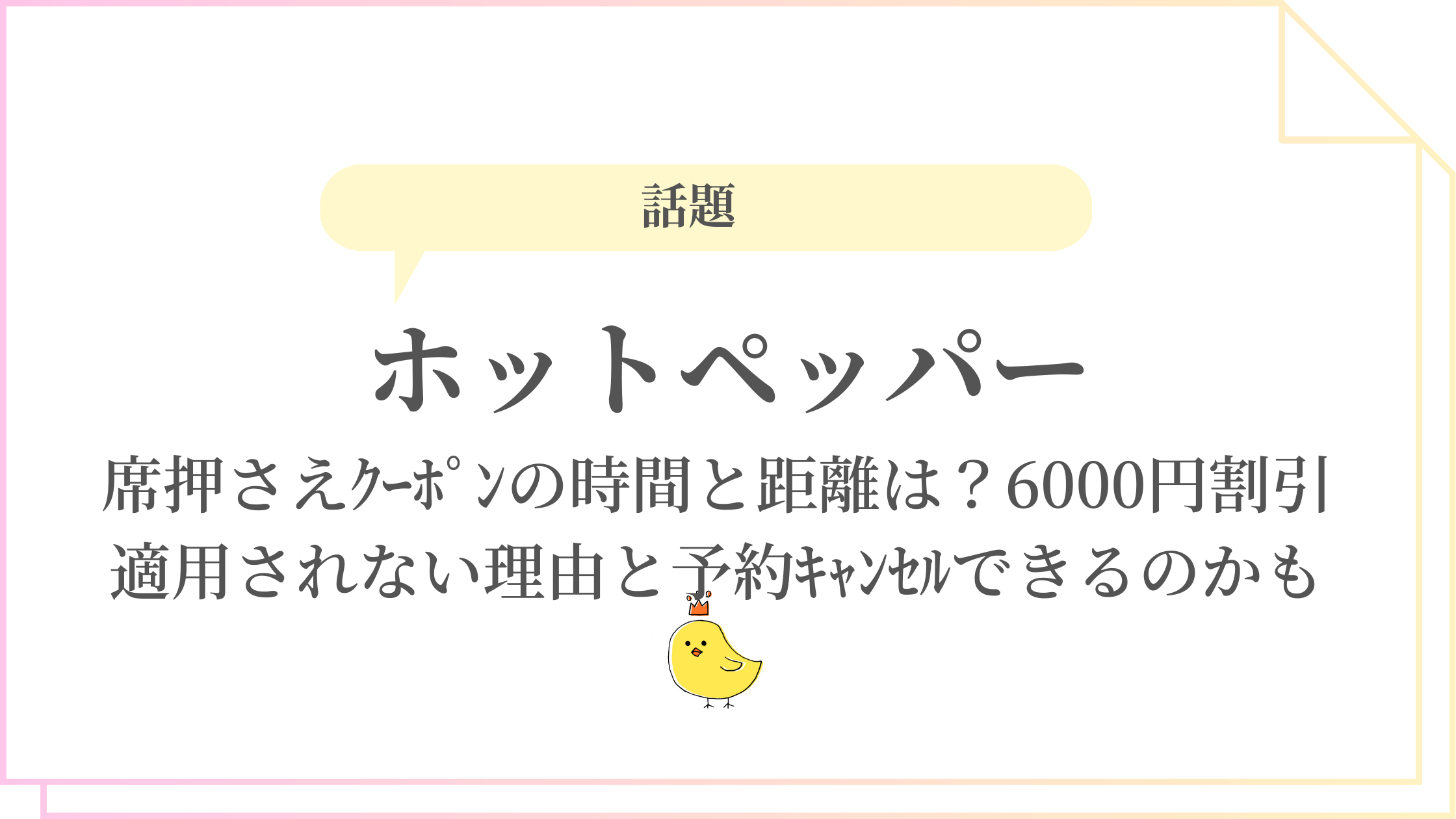 ホットペッパーの「席押さえクーポン」、時間や距離の表示もあるし、「6000円割引って書いてあるのに適用されてない…?」とちょっと分かりづらいですよね。