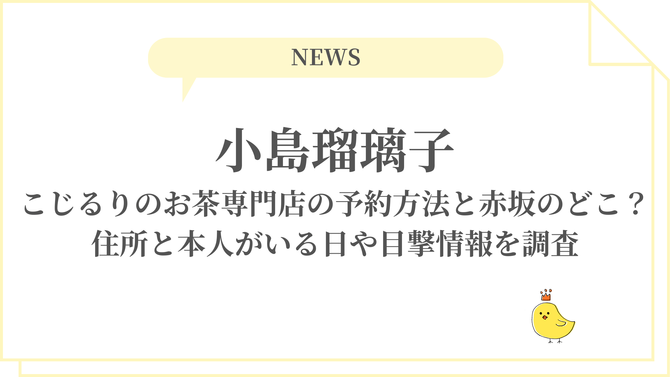 小島瑠璃子さん、別名こじるりがInstagramで発表した「赤坂での期間限定お茶専門店」がオープンし、「予約方法は?」「正確な住所どこ?」「こじるり本人がいる日は?」「目撃情報ある?」と気になる人が続出中ですね。