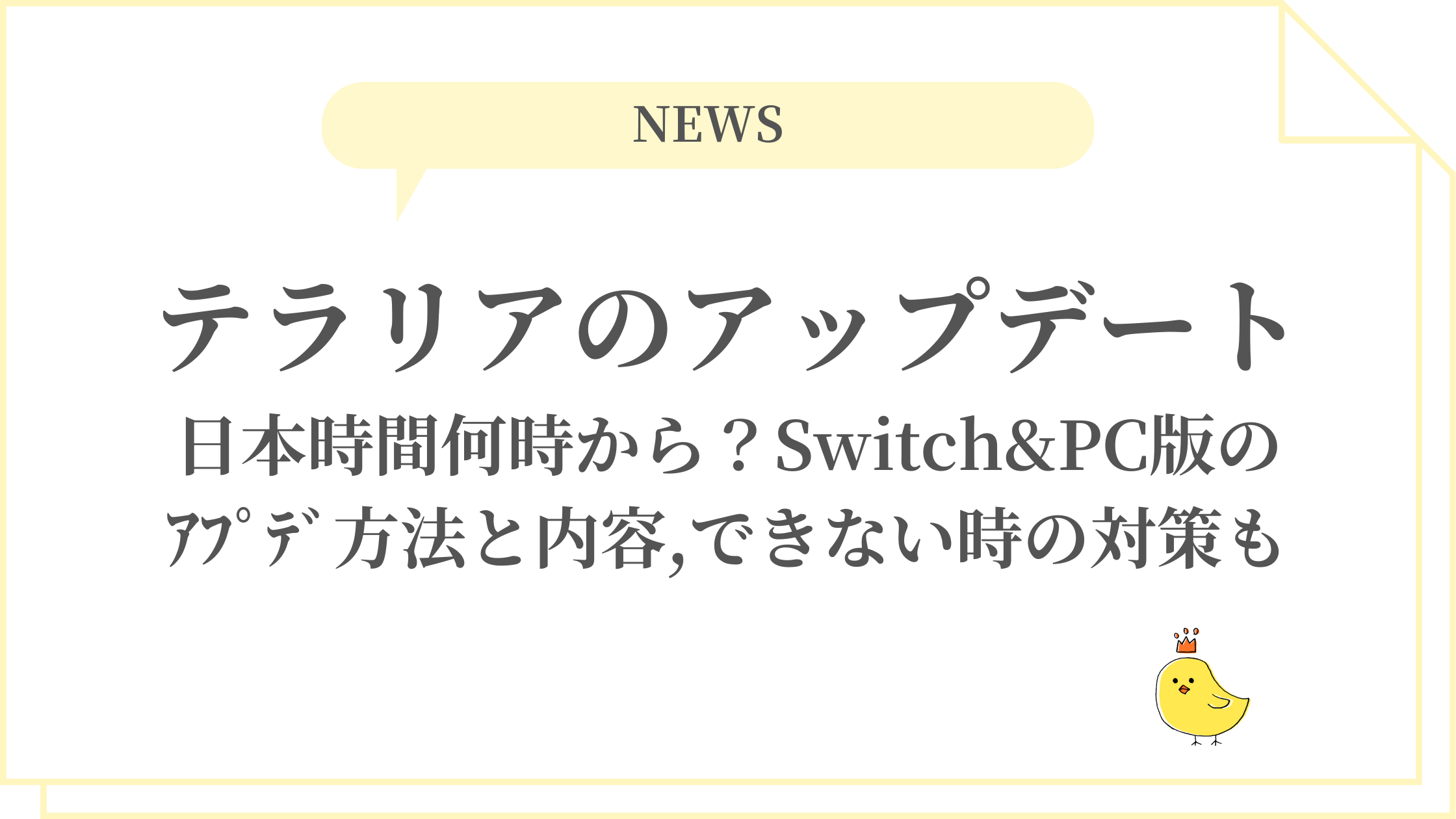 テラリアの大型アップデート1.4.5が「2026年1月27日リリース」と公式発表され、「日本時間は何時から?」「SwitchとPCのアップデ方法は?」「内容は何が変わるの?」「できない時の対処どうする?」とプレイヤー皆が待ちきれない状況です。